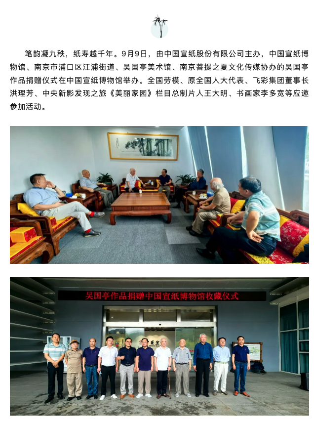 江苏南京九旬艺术大家吴国亭向中国宣纸博物馆捐赠力作